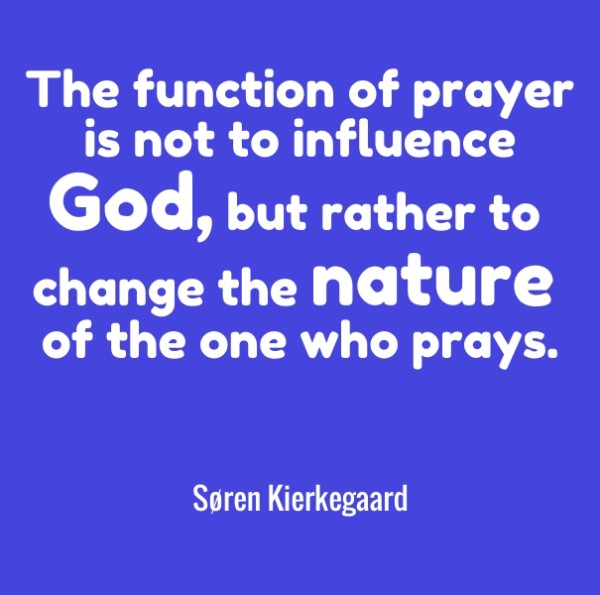 The function of prayer is not to influence God, but rather to change the nature of the one who prays. Søren Kierkegaard. Indeed, prayer prepares our nature to receive what God has already given to us in the spirit realm.