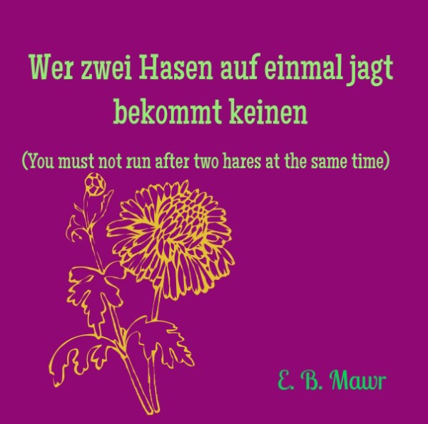Wer zwei Hasen auf einmal jagt bekommt keinen (You must not run after two hares at the same time) E. B. Mawr