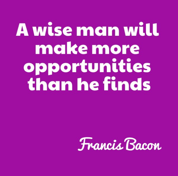 “A wise man will make more opportunities than he finds.” Francis Bacon