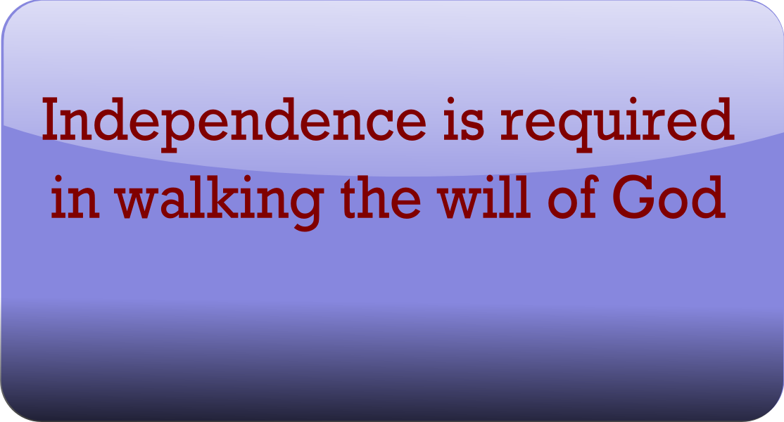 Independence is required in walking the will of God. We should be careful not to allow our dear relations to divert us from walking in the WILL OF GOD. This may be difficult to do but we must be firm!