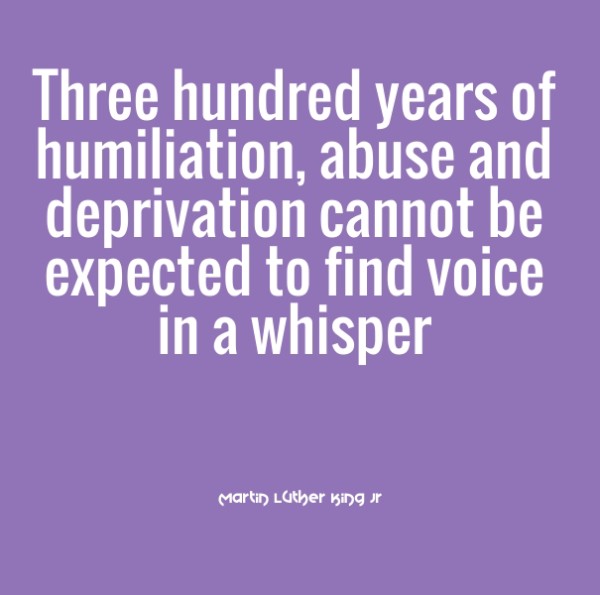 Humiliation Three hundred years of humiliation, abuse and deprivation cannot be expected to find voice in a whisper. Martin Luther King Jr Oppression is not a good thing for mankind. Let us always avoid it.