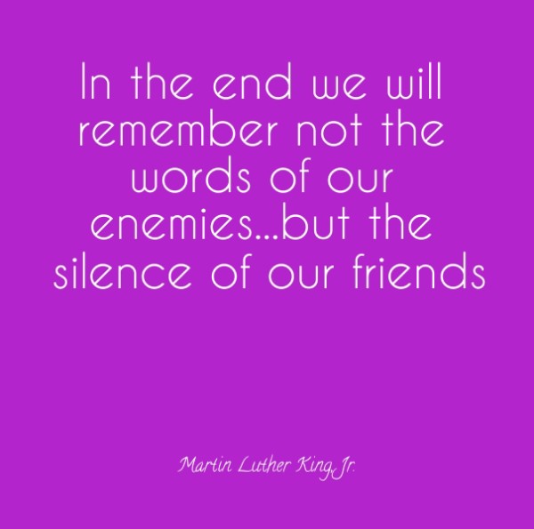 In the end we will remember not the words of our enemies…but the silence of our friends. Martin Luther King, Jr.