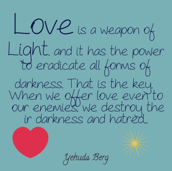“Love is a weapon of Light, and it has the power to eradicate all forms of darkness…” Yehuda Berg. Your faith must work by love.